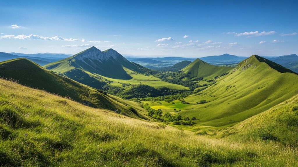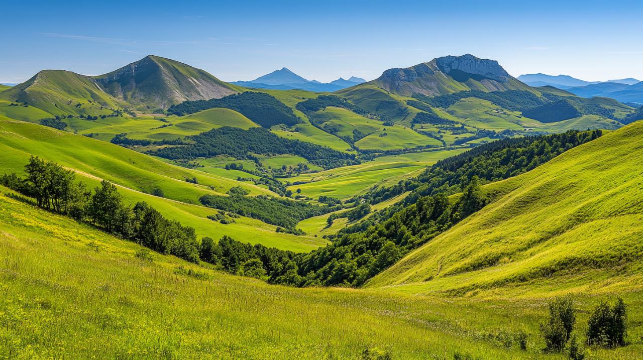 Les volcans d'Auvergne sont le résultat d'une longue histoire géologique qui a sculpté des reliefs d'une grande richesse. Le massif du Sancy culmine à plus de mille huit cents mètres d'altitude et constitue le point culminant du Massif Central. Les formations volcaniques y sont variées, alternant dômes, puys et vallées glaciaires. Ces particularités géologiques créent des paysages contrastés, où les roches basaltiques témoignent encore des éruptions passées. Les randonneurs qui arpentent ces sentiers découvrent une nature façonnée par le feu et la glace, offrant des panoramas spectaculaires sur les vallées et les plateaux environnants. Les sites naturels et le patrimoine géologique font de cette région un lieu d'exception pour les amoureux de la montagne.